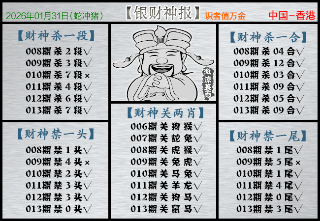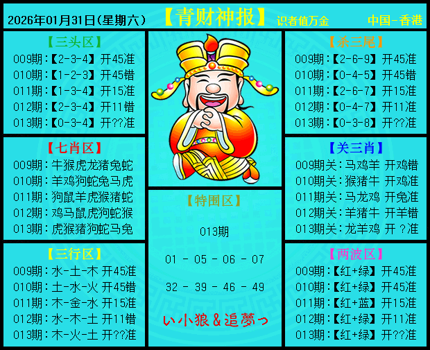 013期财神爷一句中特:龙马虎猴蛇中特。
